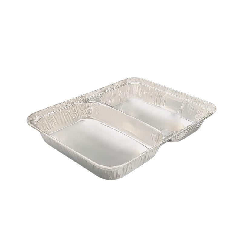Two Compartment Design: This 2-compartment aluminum foil tray is meticulously designed to keep different types of food separate, which makes it especially useful for organizing meals like rice and vegetables. The partitioned tray ensures that the integrity and flavors of each food type are preserved, making it ideal for catering, takeout, and event planning.